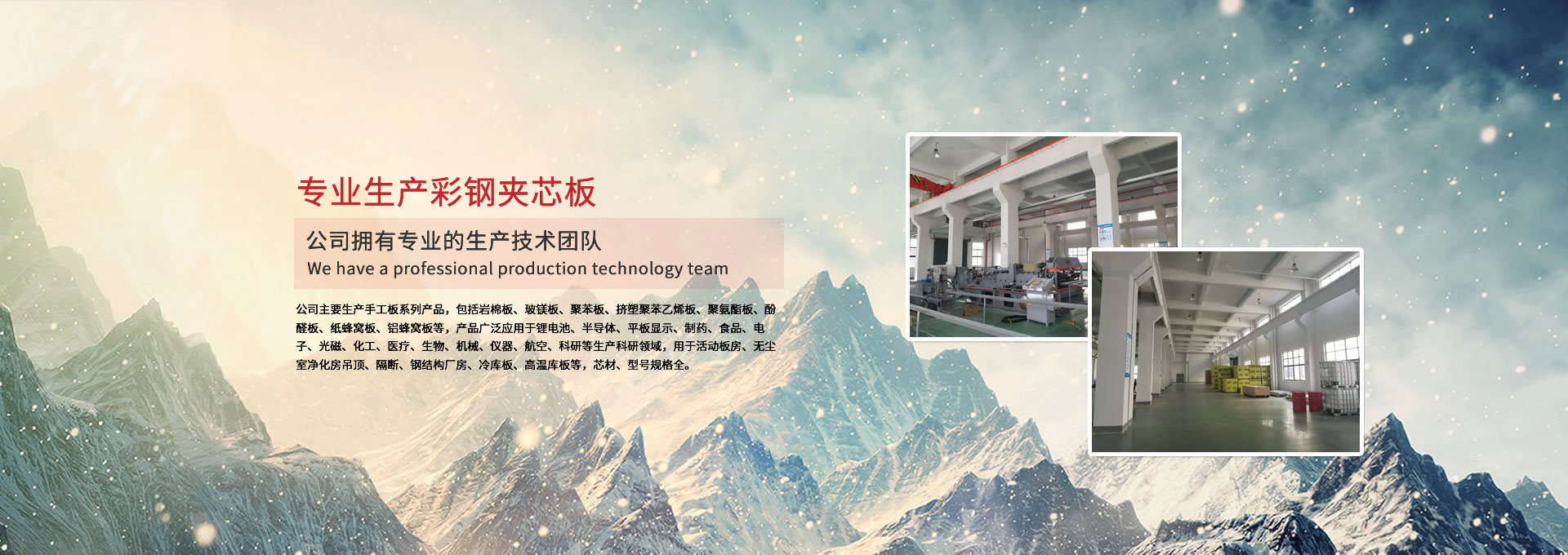 公司主要生產(chǎn)手工板系列產(chǎn)品,包括巖棉板、玻鎂板、聚苯板、擠塑聚苯乙烯板、聚氨酯板、酚醛板、紙蜂窩板、鋁蜂窩板等,產(chǎn)品廣泛應(yīng)用于鋰電池、半導(dǎo)體、平板顯示、制藥、食品、電子、光磁、化工、醫(yī)療、生物、機(jī)械、儀器、航空、科研等生產(chǎn)科研領(lǐng)域,用于活動(dòng)板房、無(wú)塵室凈化房吊頂、隔斷、鋼結(jié)構(gòu)廠房、冷庫(kù)板、高溫庫(kù)板等,芯材、型號(hào)規(guī)格全。 公司擁有專(zhuān)業(yè)的生產(chǎn)技術(shù)團(tuán)隊(duì),周到的服務(wù)保證,以“質(zhì)量至上、信譽(yù)至上、服務(wù)至上”為宗旨,為用戶(hù)提供合格的產(chǎn)品和滿(mǎn)意的服務(wù),歡迎各界朋友參觀、指導(dǎo)!公司竭誠(chéng)希望與各界朋友建立廣泛聯(lián)系,加強(qiáng)相互合作、共同發(fā)展!